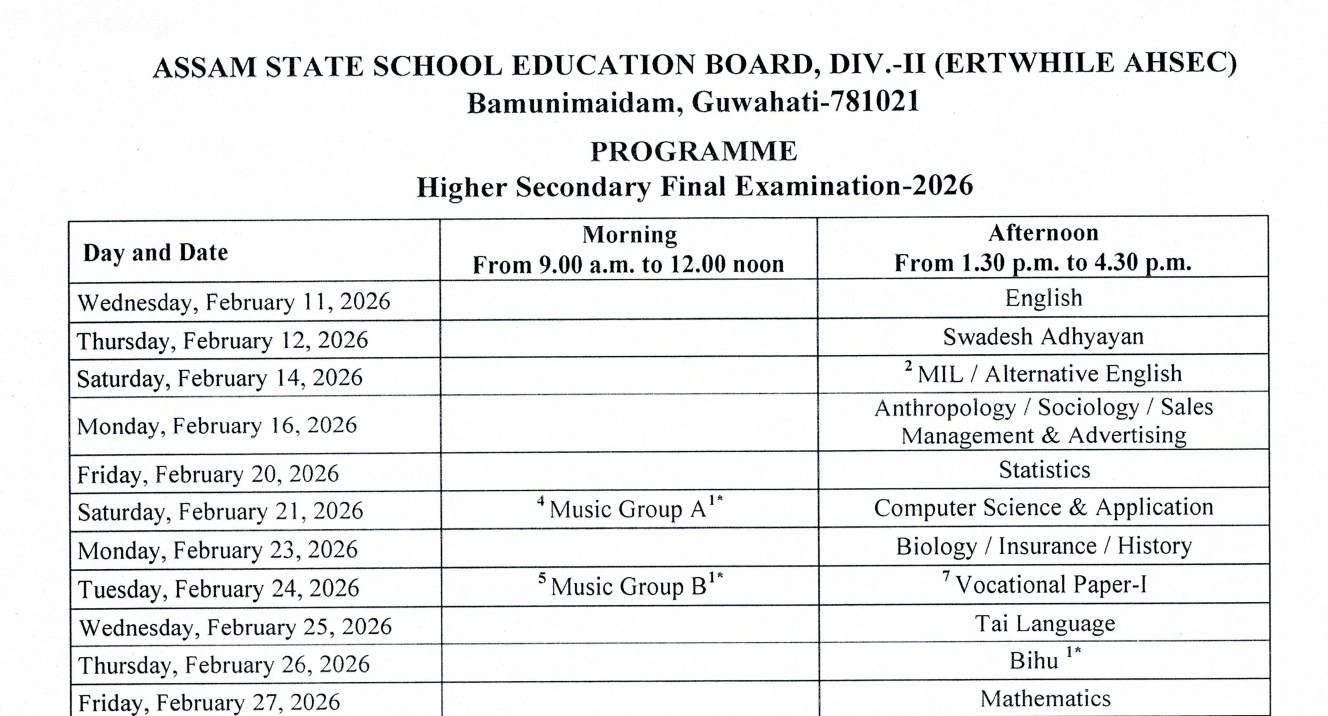 Students are advised to strictly follow the Assam HS Exam Routine 2026 and plan preparation accordingly.